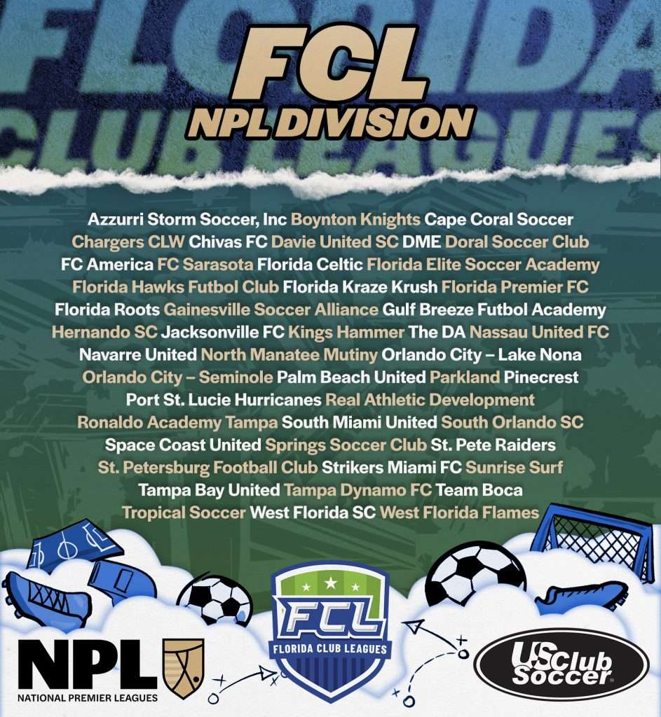 The Florida NPL features U-13 through U-18/19 boys and girls teams within the Florida Club Leagues. The Florida Club Leagues offers league- and cup-based competitive opportunities, as well as player identification and development components for top clubs in the state.